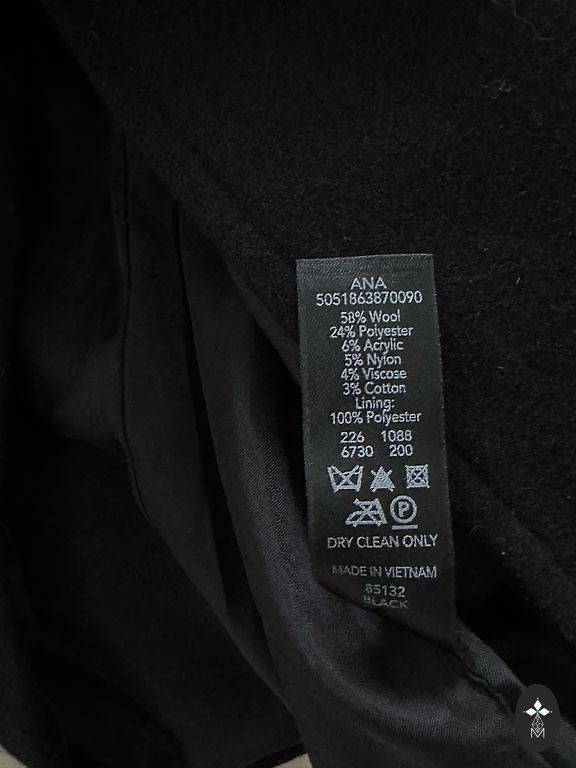 Neordinārs vilnas mētelis no Krievijas dizaineres Katya Dobryakova, 100% vilna, kabatas izšūtas ar pērlītēm, muguras daļā aplikācija, zila oderējuma, taisna silueta, aizmugurē šķēlums.