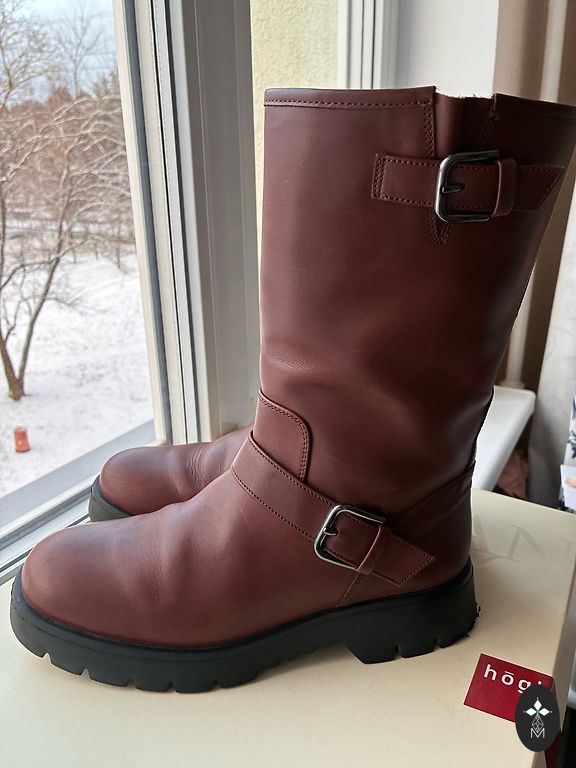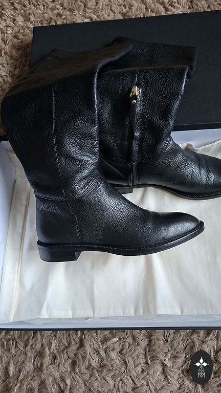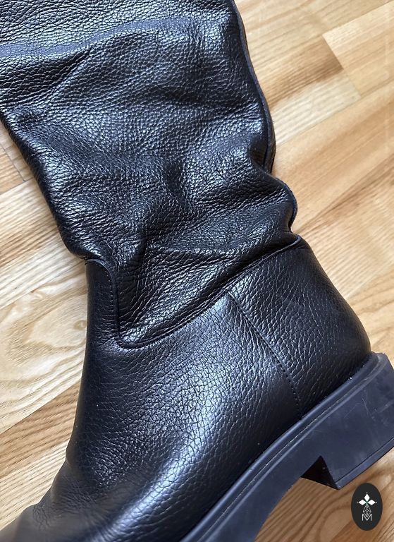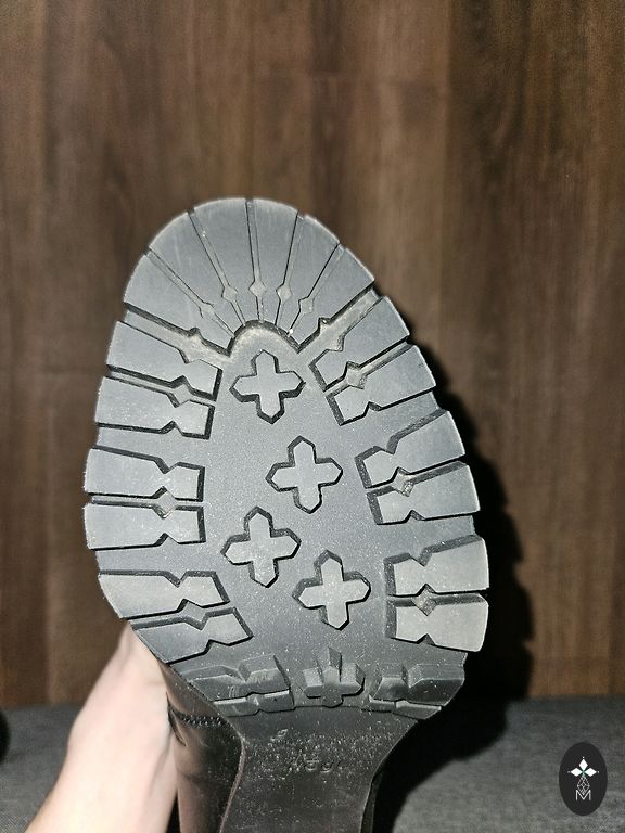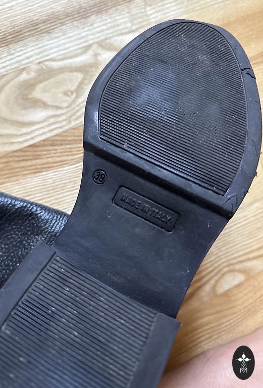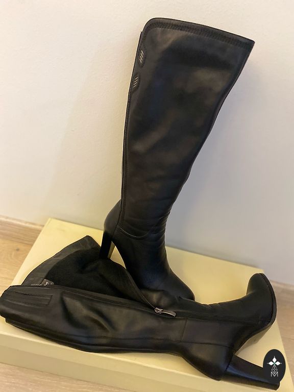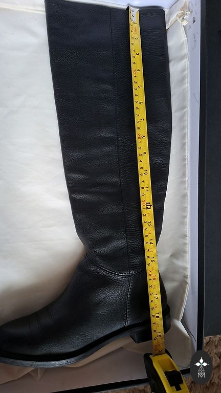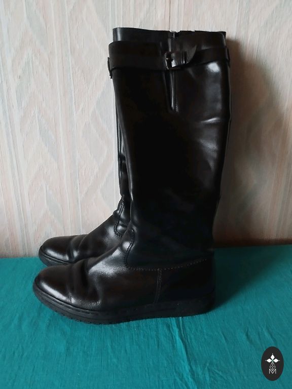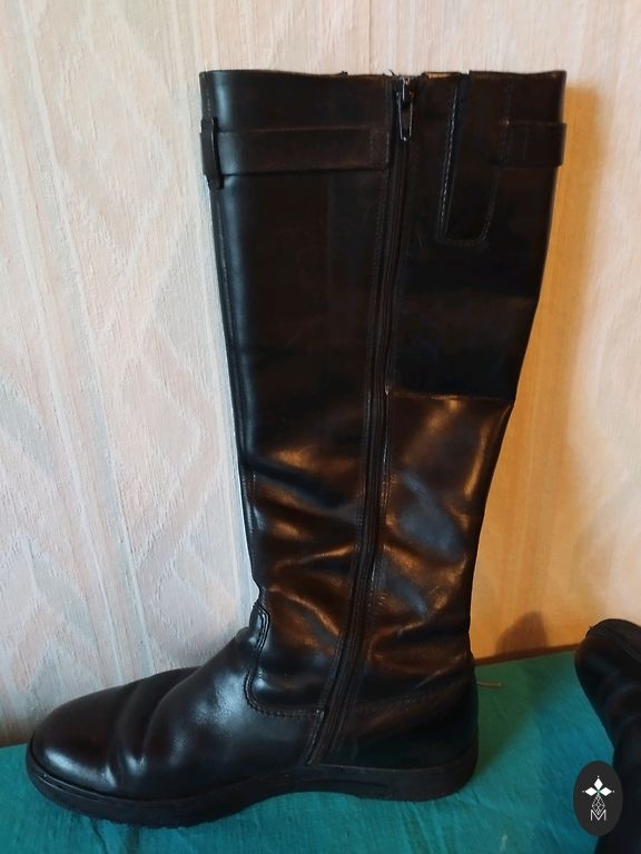 Продаю сапоги с теплой подкладкой на платформе, надетые 1 раз. Очень женственные зимние сапоги. Размер указан 6 (EU39). Есть небольшой дефект, кожа немного зацеплена молнией в незаметном месте (см. фото).
