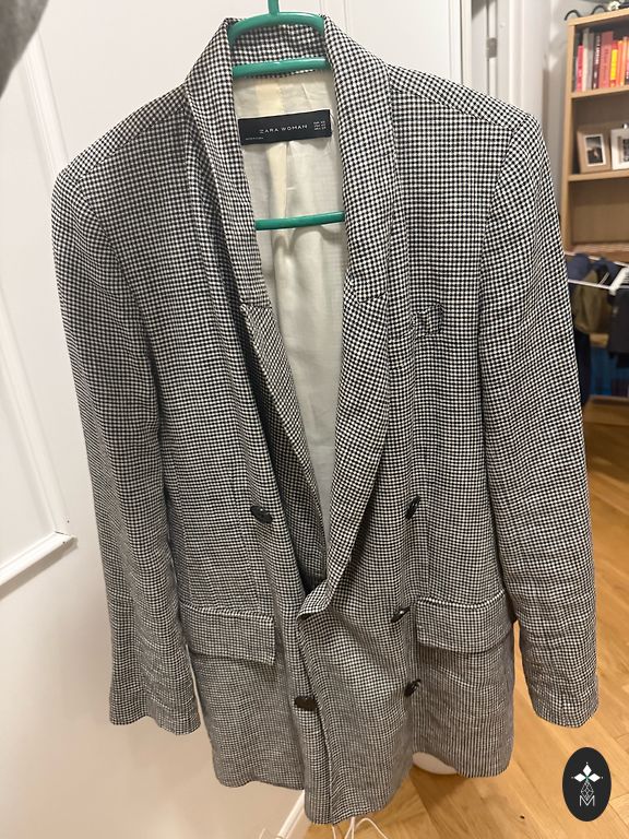 Lühike jakk, umbes puusadeni. Sobib suurusele S/XS. Õlgadel on vooder.