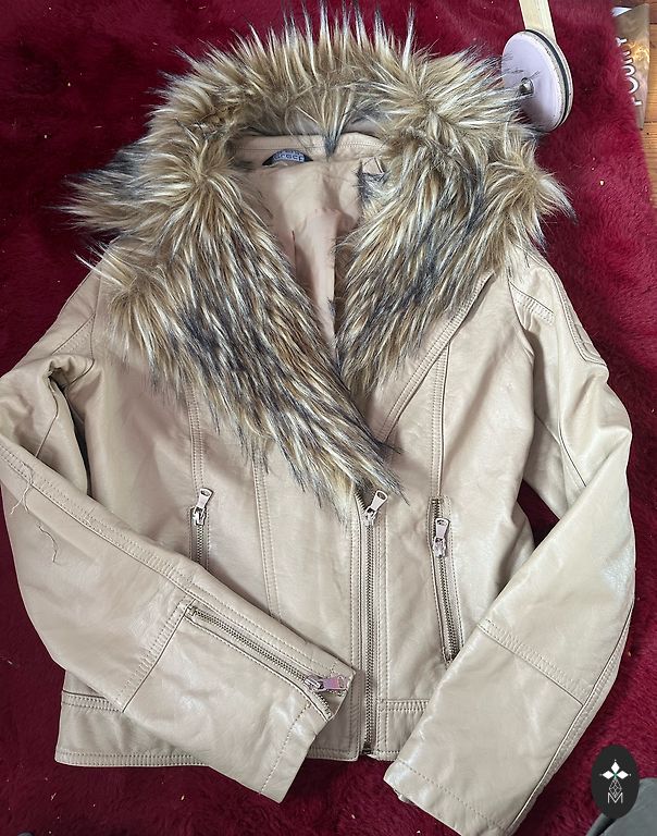 Labai graži spalvota striukė. Ne oranžinė, bet rausva, ryški kaip saldymedis. Malonios medžiagos, nėra visai plona. Dydis 32, tiks XS arba S dydžio.