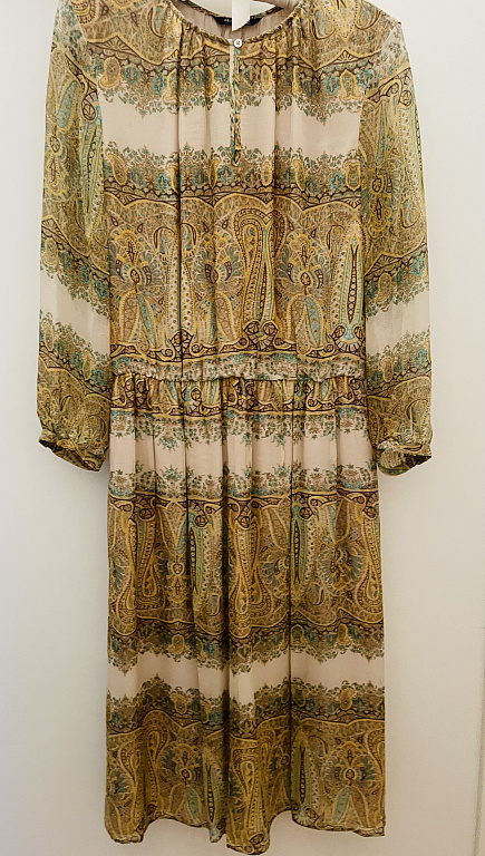 Yellow H&M dress with a belt. No defects, fits M/L size comfortably. Not transparent.