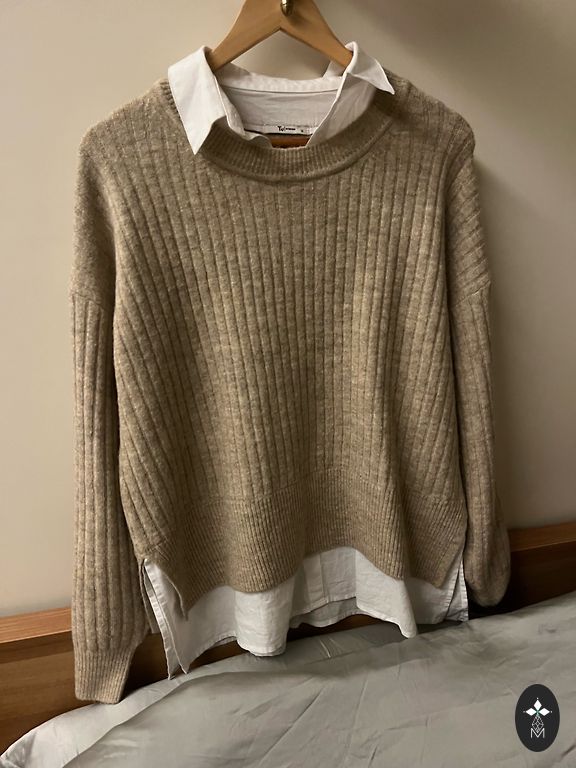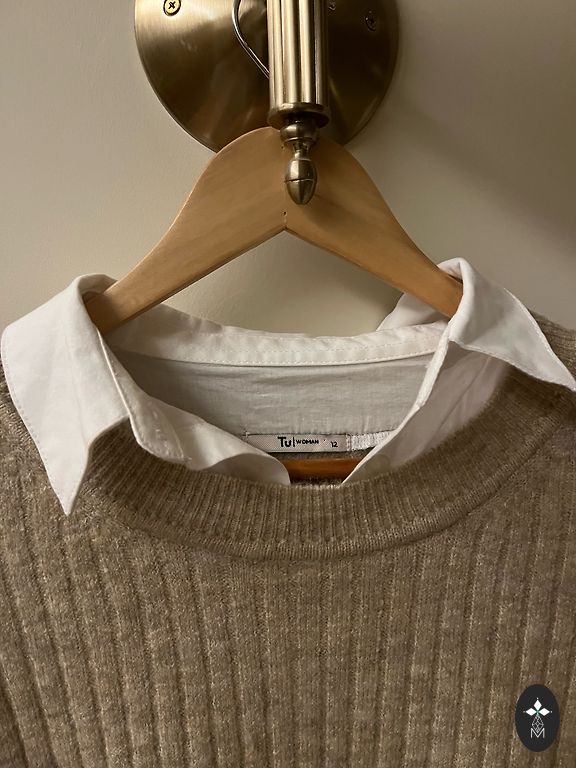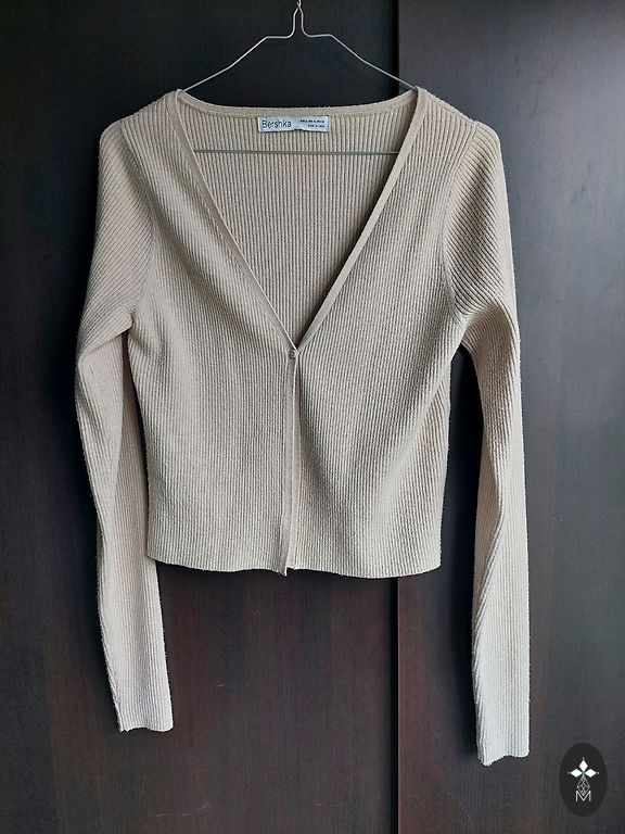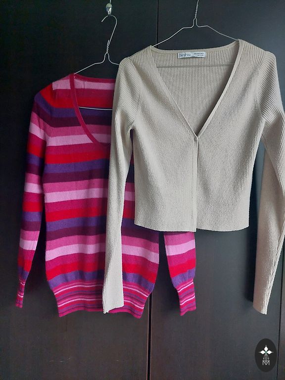 Su subtiliu auksiniu blizgesiu. Gamintojo dydis EU 40. Tarp pažastų 54x2 cm, ilgis 56 cm, rankovė nuo peties siūlės 51 cm. Siuntimas 1,99.