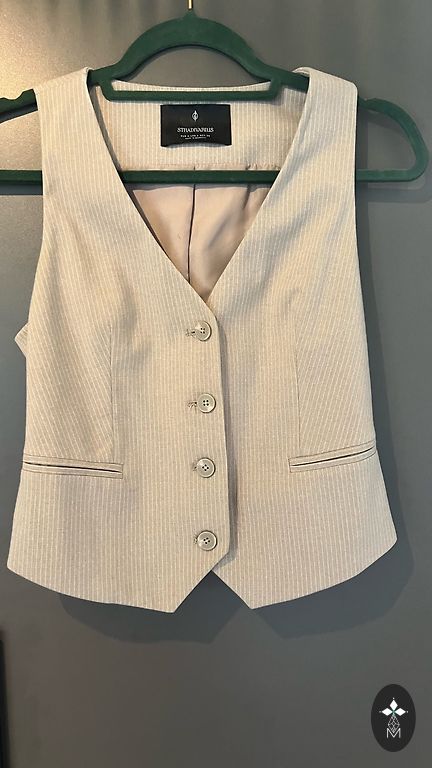 Ruuduline jakk ja pükste komplekt, paar korda kantud. Jakk suurus 36, püksid suurus 38.