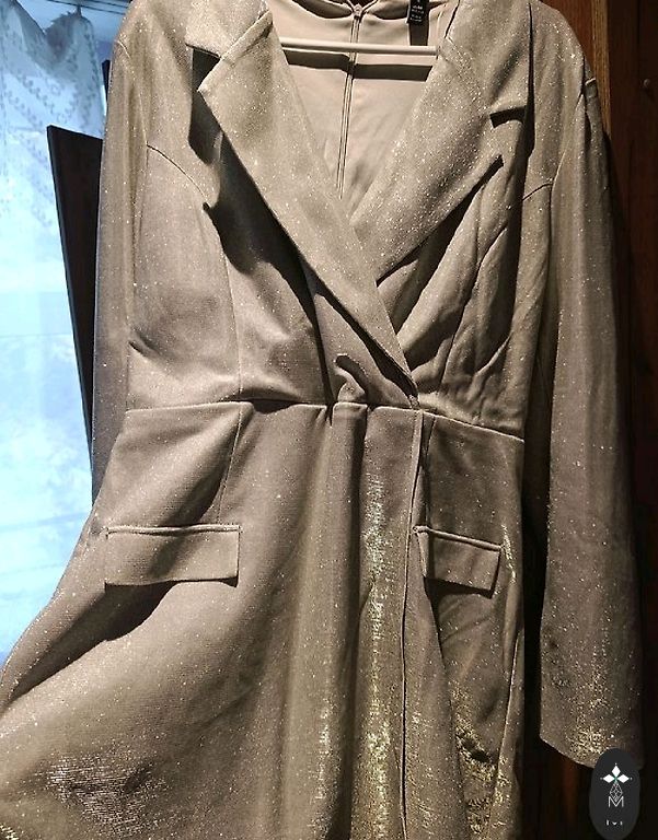Nauja, tamsiai violetinė spalva, 50 dydis, krūtinė po pažastimis 54cmx2, suknelės ilgis nuo peties vidurio 106cm, audinys šiek tiek tamprus. Kaina kartu su siuntimu.