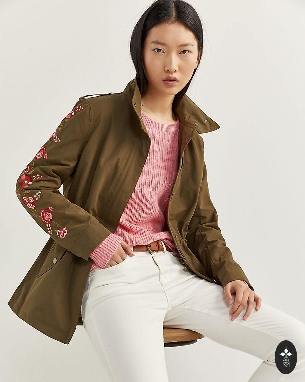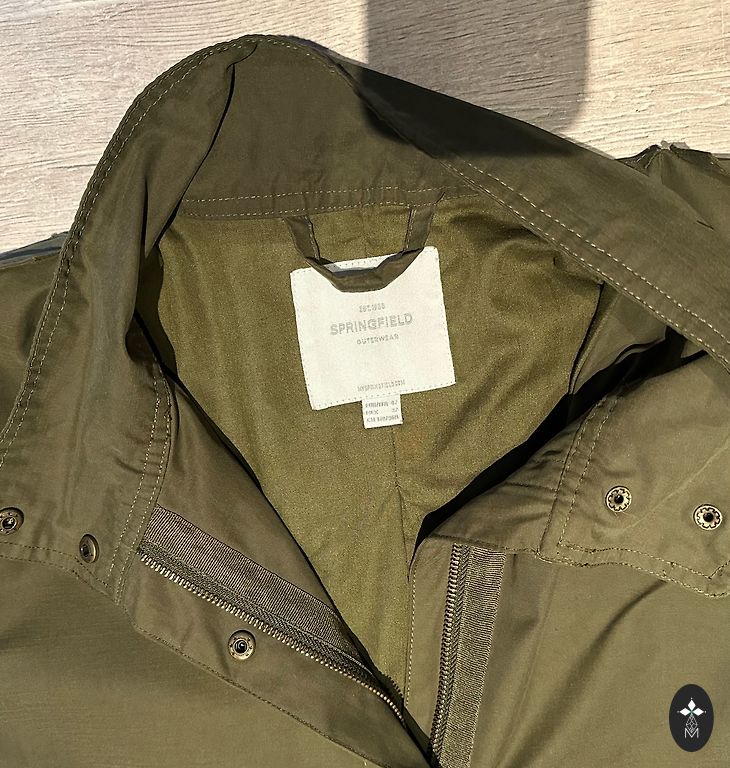 Mīksta, pūkaina iekšpuse apkaklei, savelkama jostas daļa, iekškabata ar rāvējslēdzi, priekšpusē kabatas gan ar spiedpogu, gan rāvējslēdzi, piedurkņu galus iespējams sašaurināt ar spiedpogām, adīta piedurknes “oderīte”.