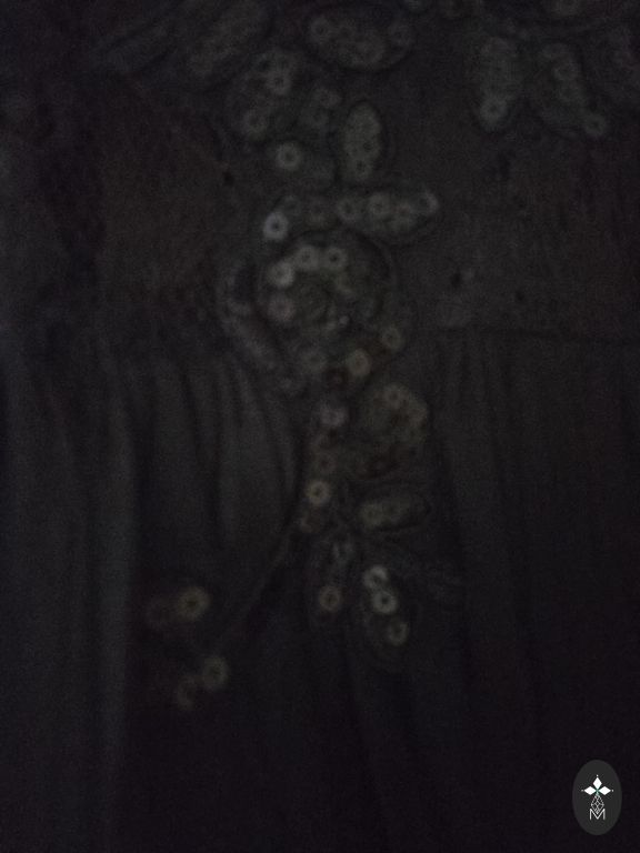 The dress has a layer of tulle with sparkles that shimmer beautifully in the light. Full underskirt.