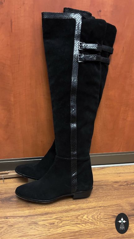 Замшевые сапоги на устойчивом каблуке 8,5 см. В отличном состоянии, надеты 1 раз. На коробке 40 размер, но они маломерят на один размер.