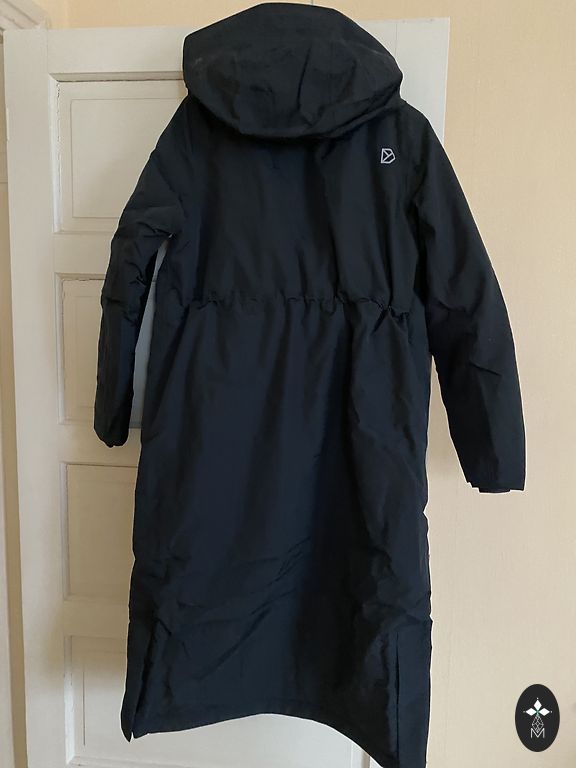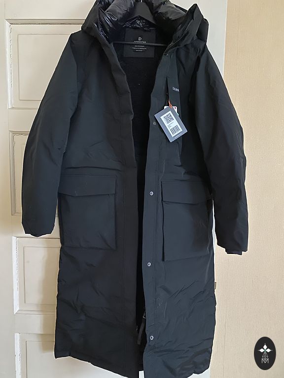 Jauns, bez birkas, tumšā bordo krāsā, foto ir gaišāks un košāks kā dzīvē. Ar kabatām un oderi, spiedpogas. Garums 97 cm un platums krūtīs 60 cm.