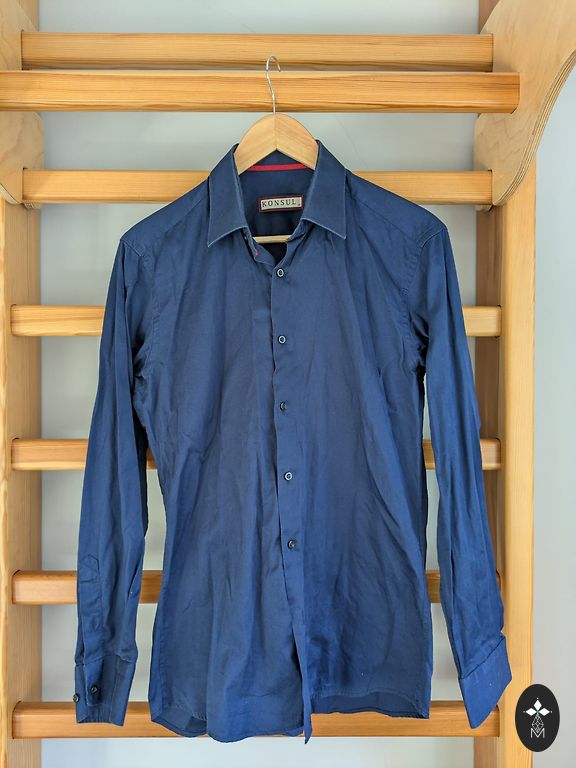 Размер 39, приталенная рубашка 'Ekoy', соответствует размеру M. В отличном состоянии, так как надета только один раз. После химчистки.