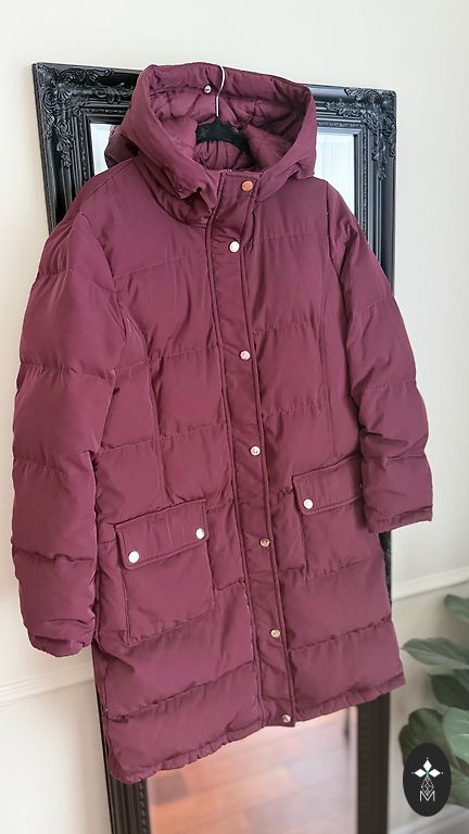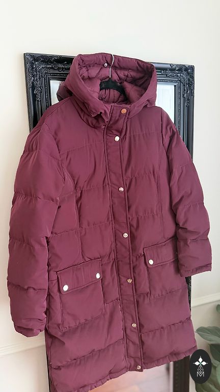 Jaka viegla, dúnu ar kapuci. Nèsājama lídz 0 gràdiem. Taisna, ísa. Muguras garums 62cm, starp padusèm 51 cm, piedurknes garums 65cm.
