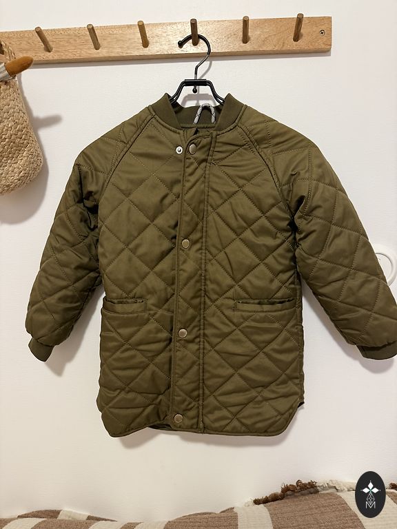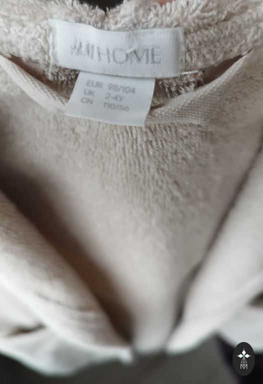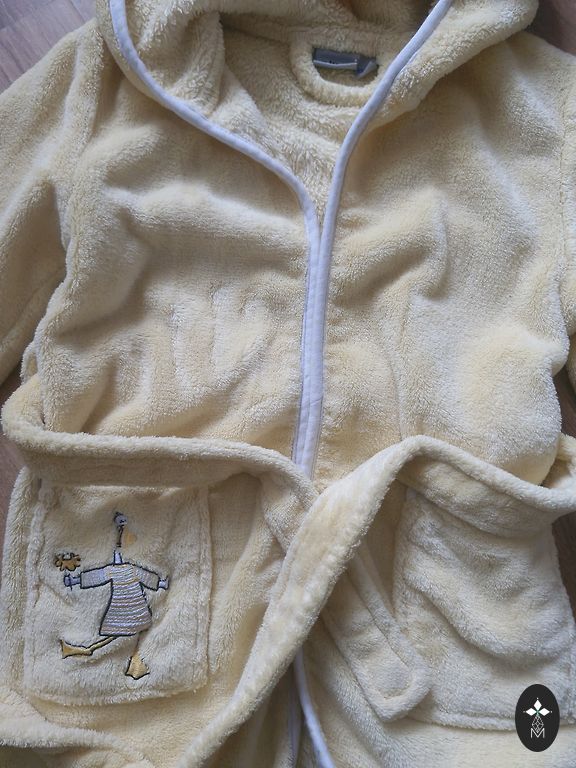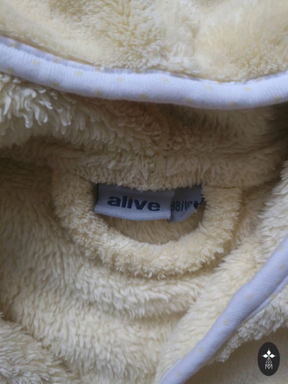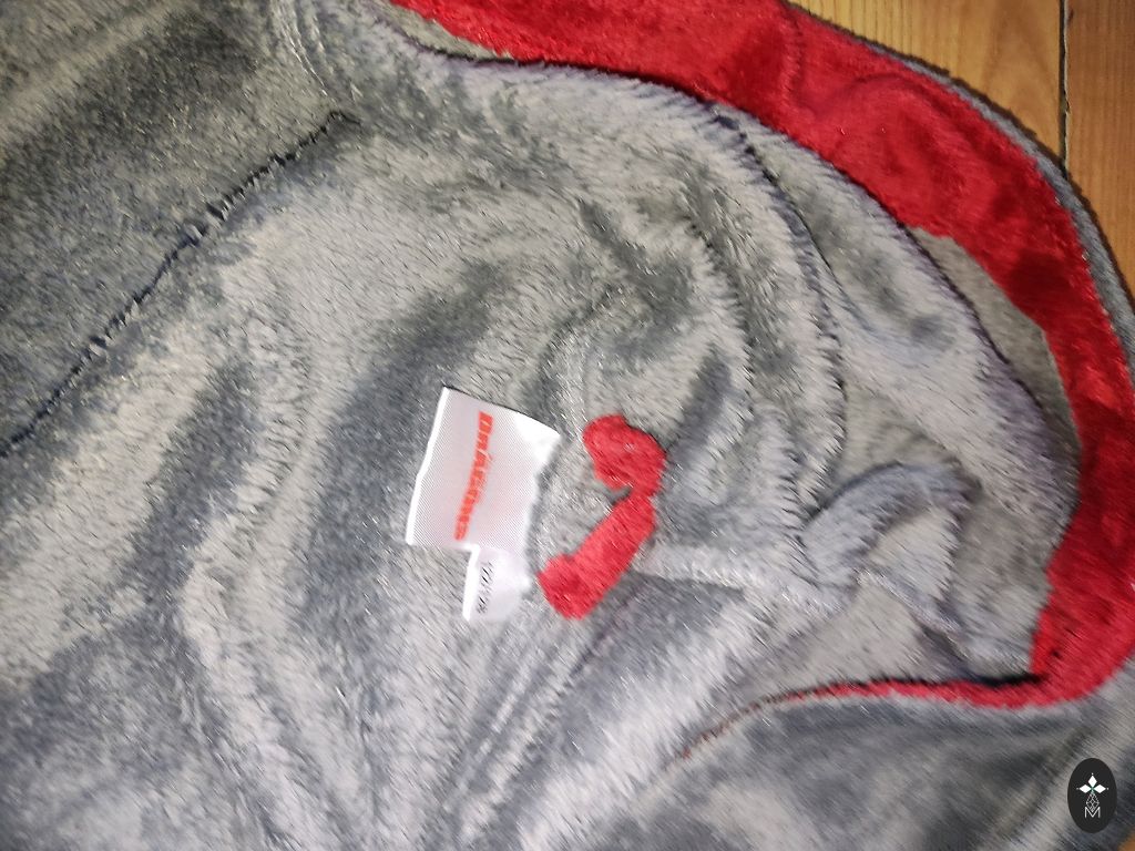 Written size 110-116, but definitely wearable earlier. In the picture, the little boy is 2 years old. The zipper color has faded. Picture attached.