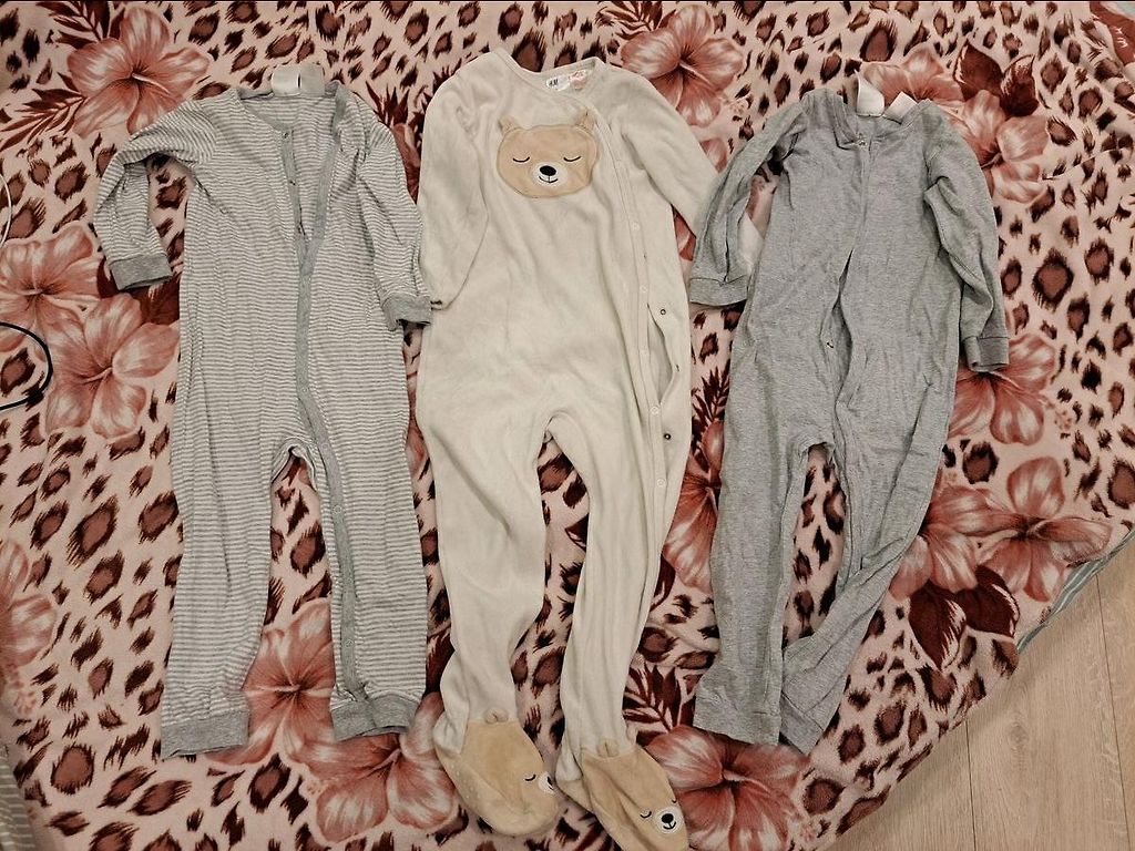 80.izmēra pidžamas. Vienai pidžamai uz rokas pleķītis.