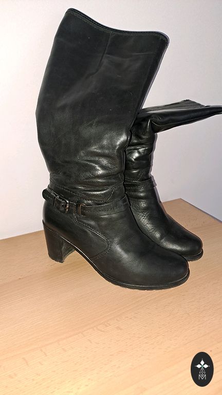 Heel height is 4cm. Boot length without the heel is 38cm.
