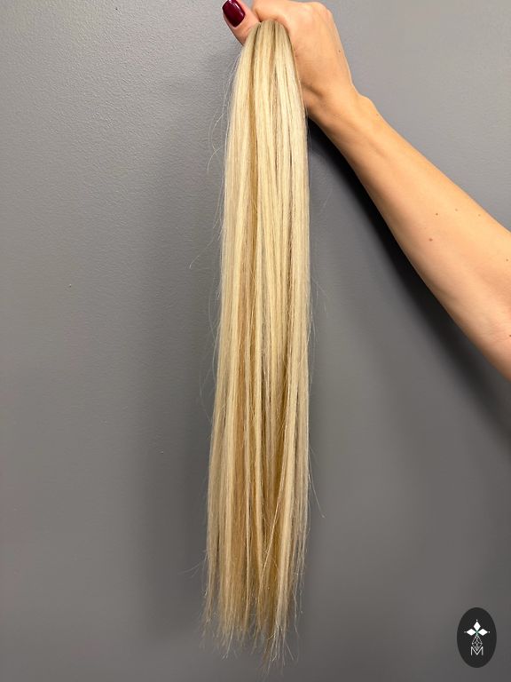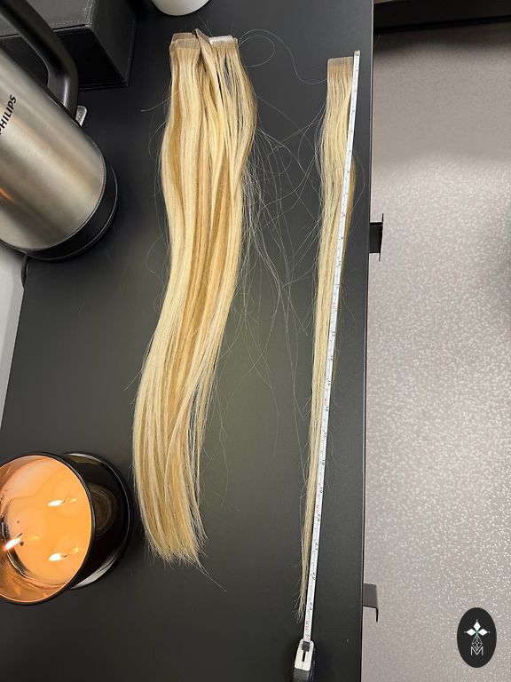Отличные волосы, легкие и шелковистые. Носились всего один месяц. Очень естественный тон, у корней темнее. Куплены за 300 €. Длина 38 см. 98 капсул.