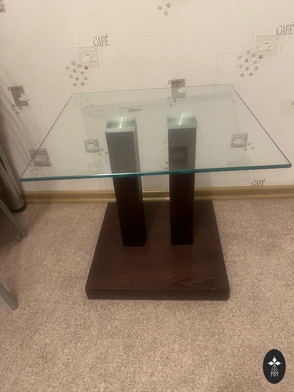 Gražus žurnalinis staliukas, pagamintas iš marmuro. Stiklinis stalviršis, yra įbrėžimų, dydis 109,5×59,5 cm. Kaina 55 eurai.