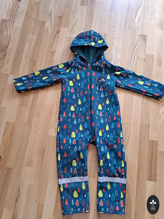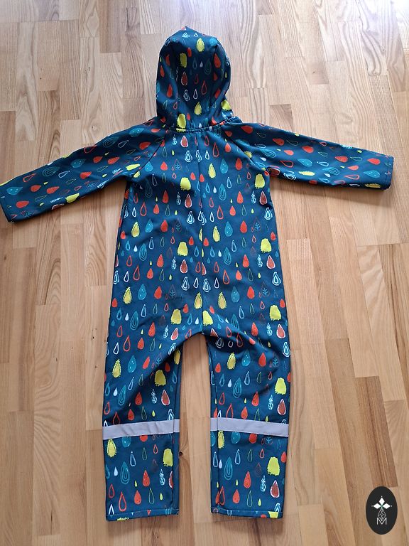 Plonas softshell kombinezonas, viduje flisas. Dėvėtas kelis kartus. Gaubtas nuimamas. Ilgis nuo juosmens iki kojų - 45 cm, visas ilgis - 70 cm. Patogus ir lengvai prižiūrimas.