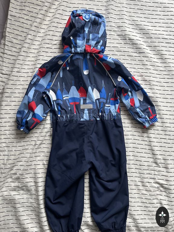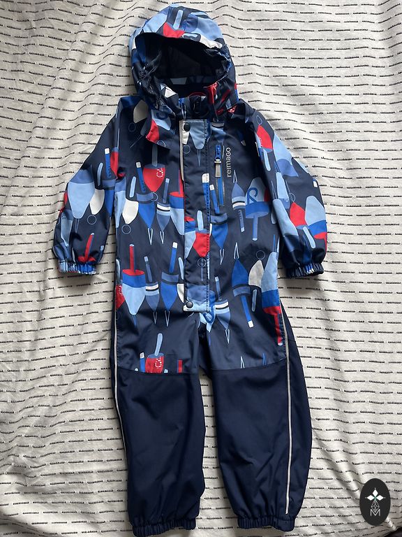 Sezoninis kombinezonas, dydis 104. Medžiaga: softshell su šiltu medvilnės pamušalu, tinkamas nuo +10 iki 0. Būklė gera, iš trūkumų: pamušalas turi pūkų, jei labai įsižiūrėti - nedideli nutrinimai ant kelių, audinys šiose vietose laikui bėgant tapo šiek tiek tamsesnis, bet uždėjus tai tikrai nėra pastebima.