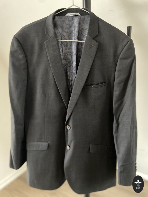 Pārdodu klasisku vīriešu žaketi tumši zilā krāsā ar zilu oderi.