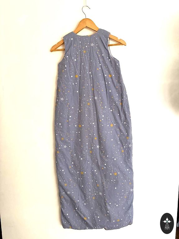 Grobag kūdikių miegmaišis iš plonos, minkšto medvilnės, vaikams nuo 18-36 mėnesių arba 1.5-3 metų amžiaus. Minimalūs naudojimo požymiai, šiek tiek nusidažęs apykaklės viduje. Kruopščiai susiūtas prie angos gale. Pridedama originali audinio maišelis. Bendras ilgis - 100 cm, nuo pažasties iki pažasties - 32 cm. Storis - 0.5 tog. Pasiėmimas Rygos centre arba bet kuriame paštomate.