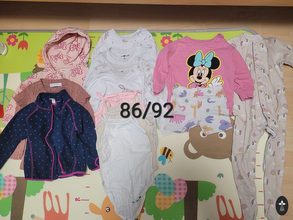13 vienību komplekts 86.izmēram. Komplektā 1 uz kņopītēm pogājamā pidžamma, 3 džemperīši ar siltumiņu, 4 garroku krekliņi, 1 pogājamais bodijs, 3 bikšeles.