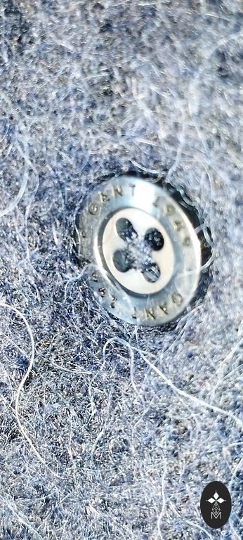 Бордовый жакет с золотистыми пуговицами.
