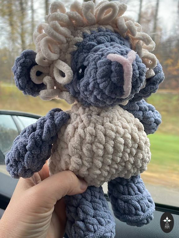 Tamborēts no mīkstas plīša dzijas. Sintepona pildījums.