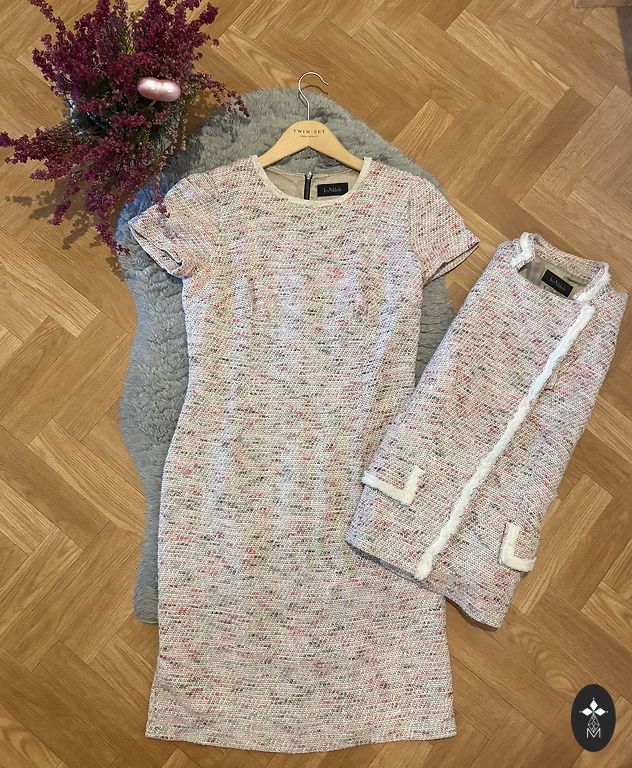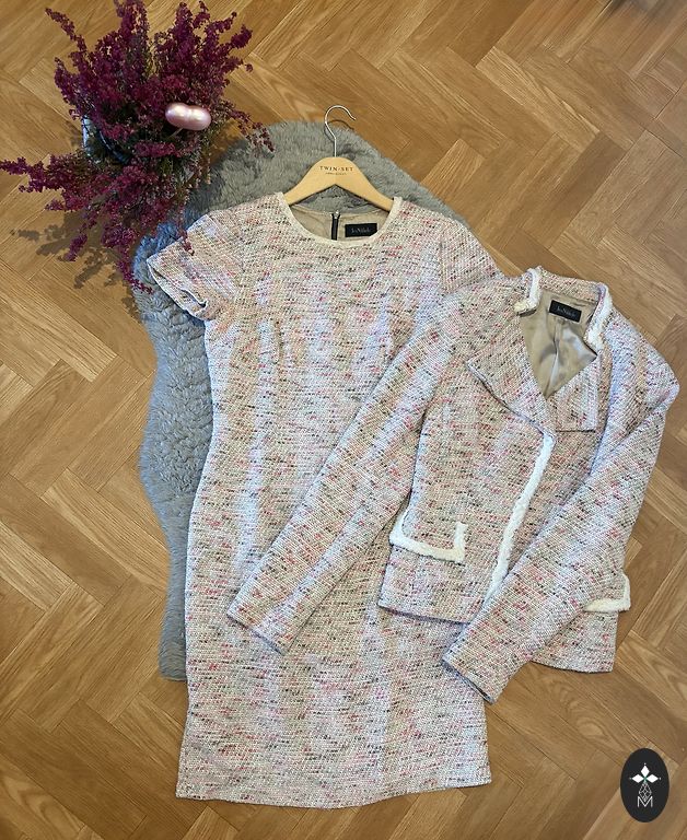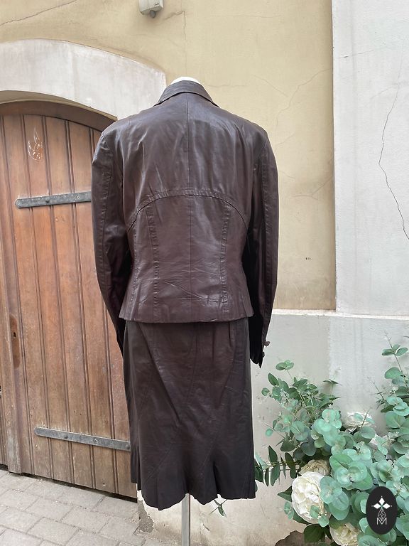 Selling a suit in very good condition, size XS or 34 (Italian size 38), material varies: viscose, elastane, polyester. Color caramel brown. Pants parameters: waist 34 cm, hips ~ 42 cm, length 110 cm, inseam 82 cm. Jacket parameters: shoulders 38 cm, underarm 44 cm, sleeve 60 cm, length from shoulder down 70 cm. This suit is suitable for work, theater, or any other event.
