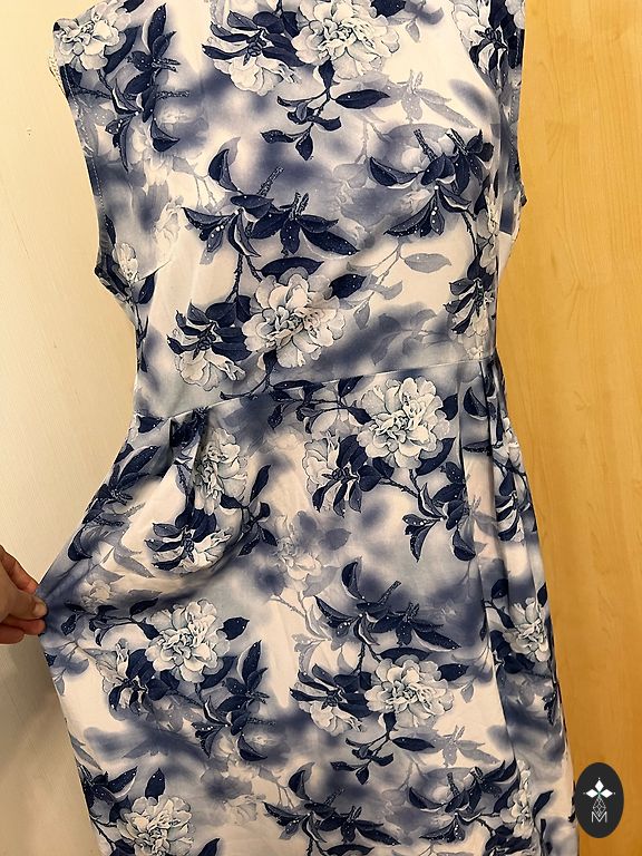 Priekšpuses audums zīdveida, spīdīgs poliesters, aizmugure - trikotāža.