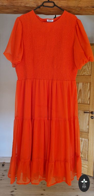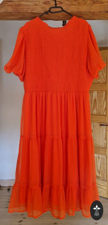 Izmērs varētu būt 44/46, bet kleita staipās.