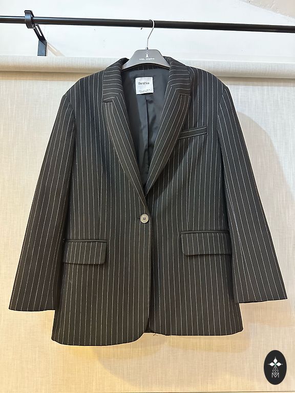 Šventinis švarkas, kurio ilgis puikiai atrodo su suknele, sijonais ar aukštu liemeniu! Švarkas visiškai juodas, bet audinys su raštu. Yra pamušalas.