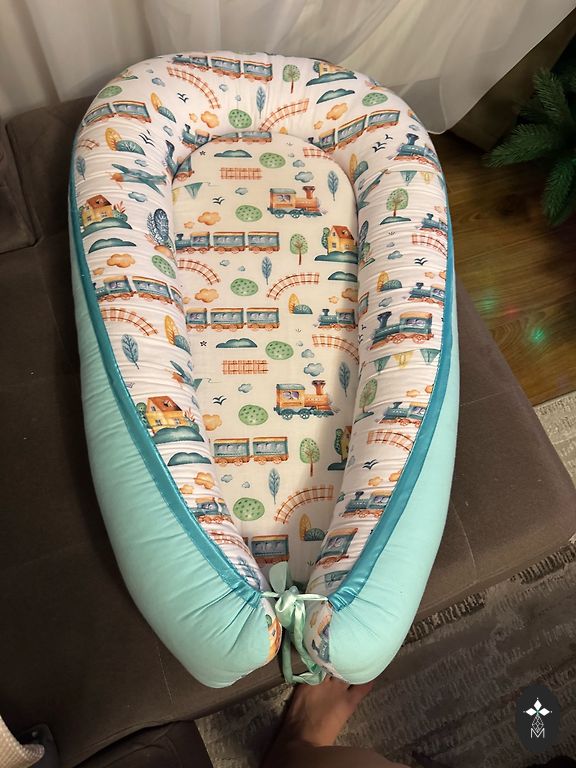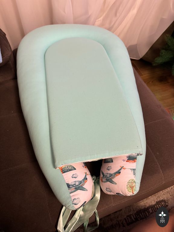 Montessori philosophy-inspired nest for the baby's first months. It was very useful for us in the first months to keep the baby in a spine-safe position next to us. Includes a mattress with a sheet. Located in Olaine, won't fit in a parcel locker.