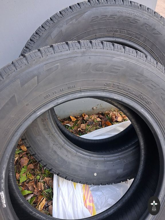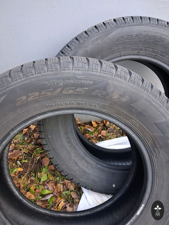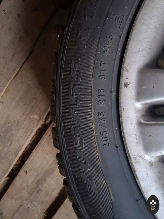 Used winter tires M+S, tread from 5mm to 6mm (as seen in the picture). Tires are given away together with 4 rims, condition can be seen in the picture. The rims were for a Volvo V40 2003 model, will also fit Volvo S40. Tire size 195/65 R15 95T.