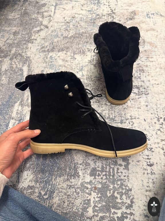 Dabīgās zamšādas kurpes. Norādīts 39 izmērs, taču ir mazākas un atbilst stabilām 38 izmēram.
