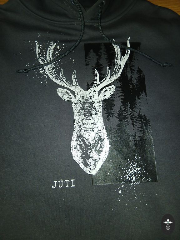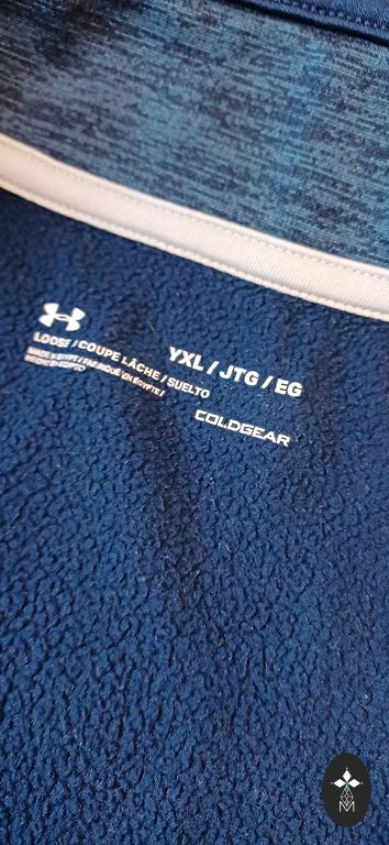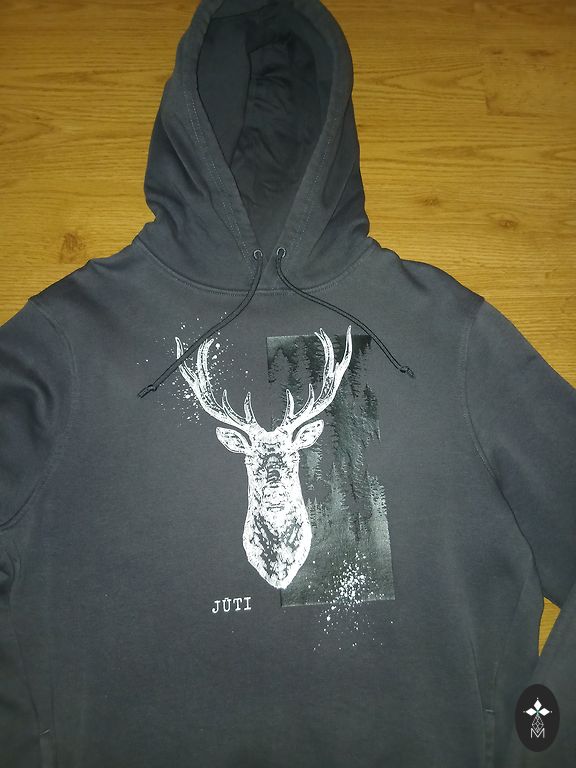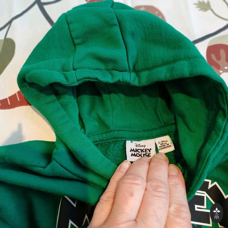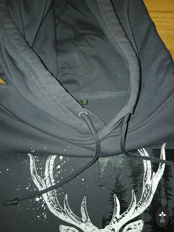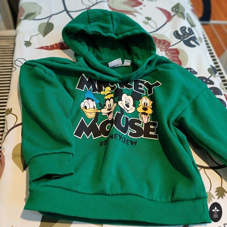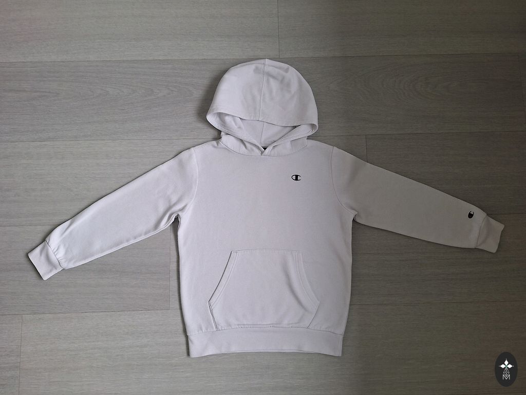Izmērs norādīts Large, derēs 12-13 gadīgam zēnam. Piedurknes garums 52 cm, garums no pleca līnijas 58 cm. Uz vēdera kabata. Kapuce ar oderi. Defektu nav.