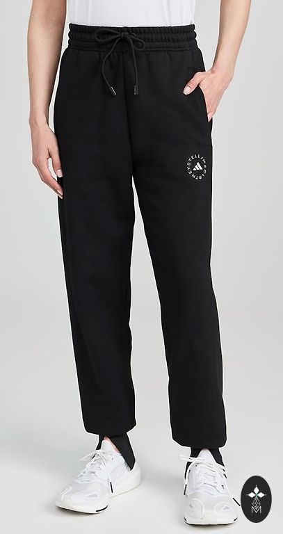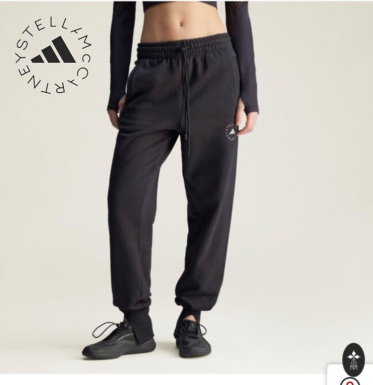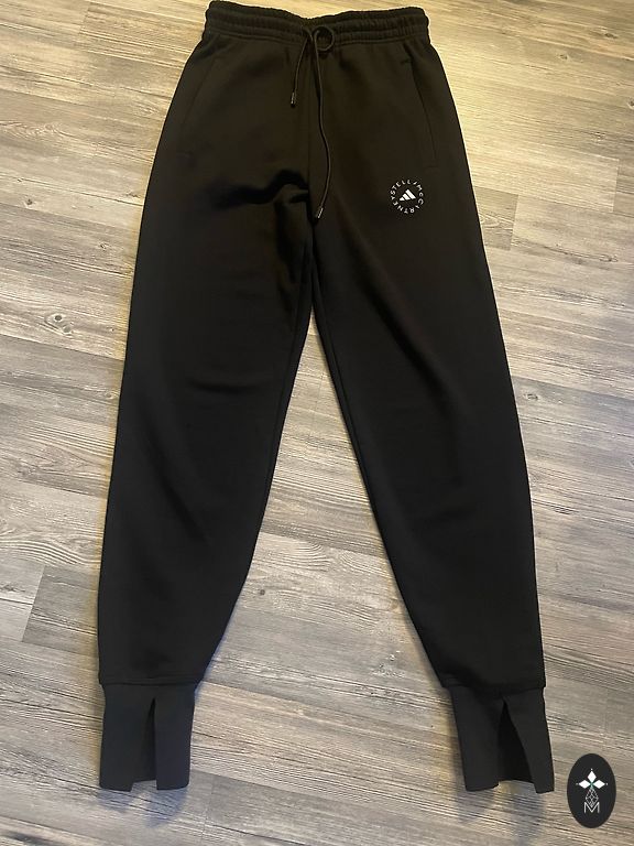 Trikotāžas platas sporta bikses melnā krāsā. Sānos un aizmugurē kabatas, bikšu galos nelieli šķēlumi. Atbilst izmēram xs-s, uz augumu 165-170.