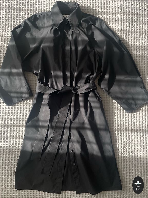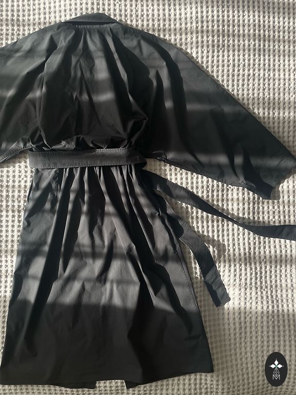 Vidutinio ilgio trikotažinė suknelė su gėlių raštu. Su mažais iškirpimais šonuose, V formos apykakle ir klasikiniu kirpimu. Šiek tiek platėja į apačią. Geros sudėties - 70% viskozė.