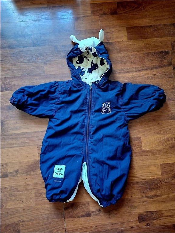 Kombinezons ir labā stāvoklī. Bērns sēdēja tajā ratiņos.