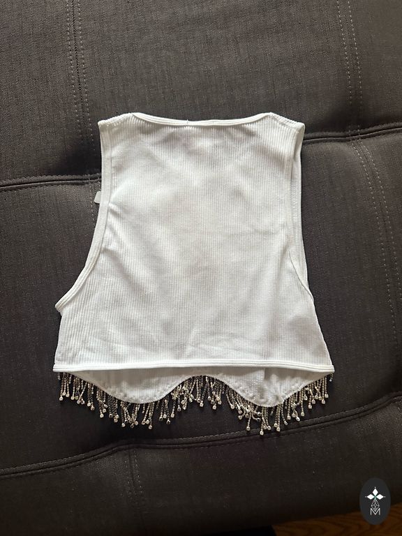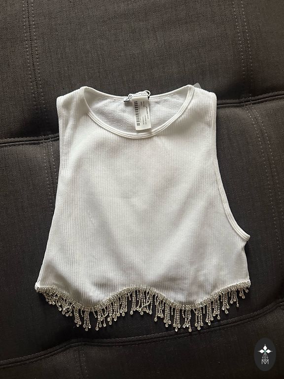 Selling two Zara tops together. One (white) is new with price tags, featuring minimalist details, very feminine. The other (beige) is a casual top with a fitted material, very lightly used.
