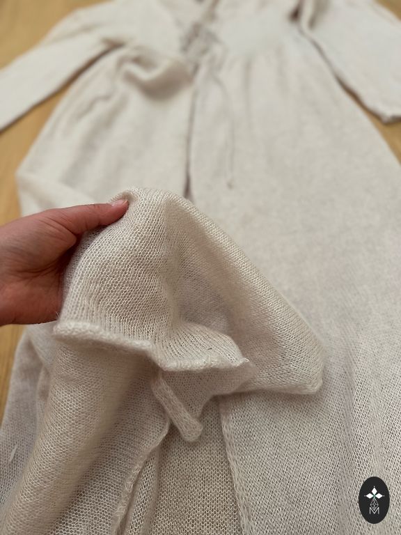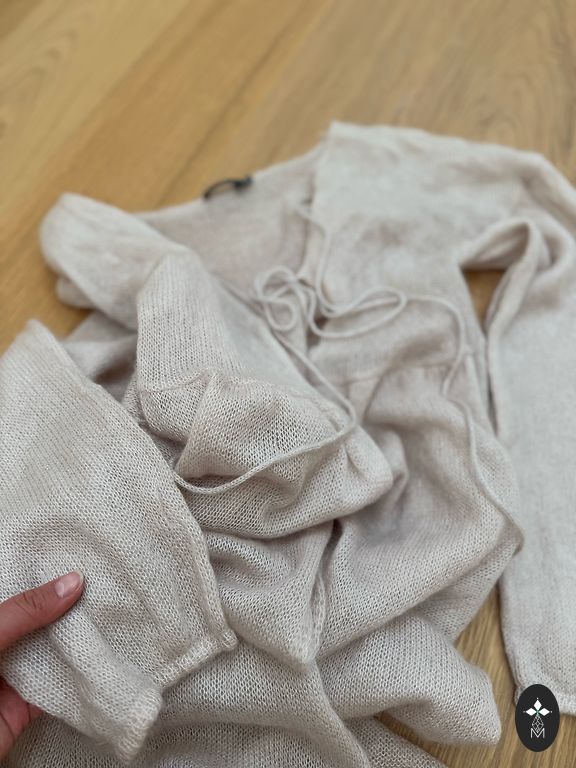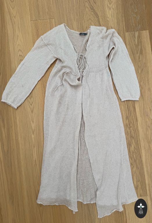 Smėlio spalvos kardiganas su veliūro tipo mezgimu