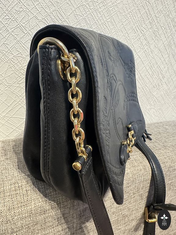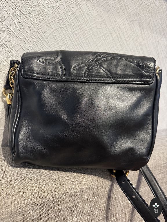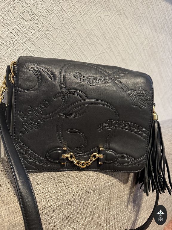 Ādas soma, lietota pāris reizes. Augstums 21 cm, platums 17 cm, dziļums 7 cm. Garā siksna ir noņemama.
