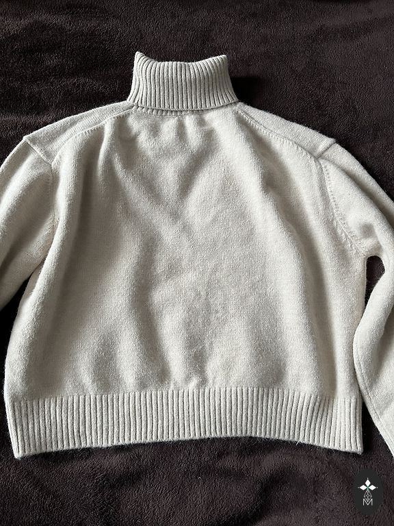 Милый свитер как блузка, хорошо смотрится с синими джинсами. Обхват груди, не растягивая ткань, 108 см, бедра 108 см, рукава 63 см.