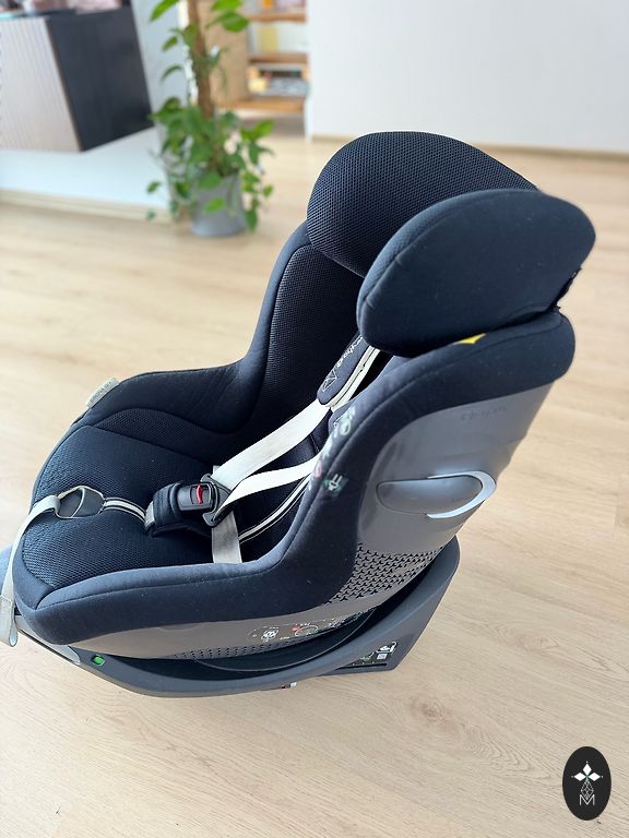360-degree rotation. There is an option to turn the seat sideways to facilitate placing the baby in the seat and taking them out. The backrest angle is adjustable.