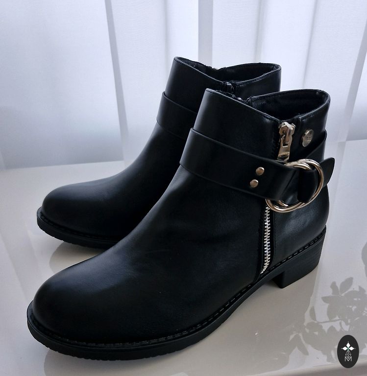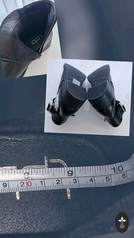 Elegantas H&M sieviešu kurpes–zābaciņi melnā krāsā ar vidēji augstu, stabilu papēdi. Kombinēta materiāla dizains – zamšādas efekta audums priekšpusē un gluda ādas imitācija aizmugurē. Elastīga augšdaļa nodrošina ērtu piegulumu un vieglu uzvilkšanu. Ideālas gan svinīgiem pasākumiem, gan stilīgam ikdienas izskatam.