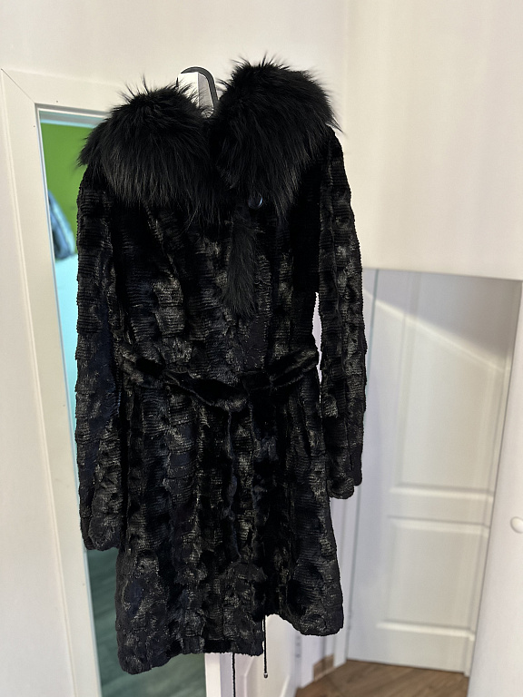 Элегантная и теплая женская куртка из мягкого искусственного меха. Классический крой с высоким воротником, без капюшона. Идеально подходит для прохладных осенних или зимних вечеров. Ткань плотная, мягкая на ощупь и качественная. Куртка сохраняет форму и выглядит отлично.