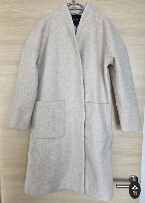 Легкое, удобное полупальто с застежкой на молнию и скрытыми кнопками, карманами, поясом. Длина от плеча 91 см, рукава 60 см, грудь 100 см, размер 36-38, согласно таблице размеров VivieTam.