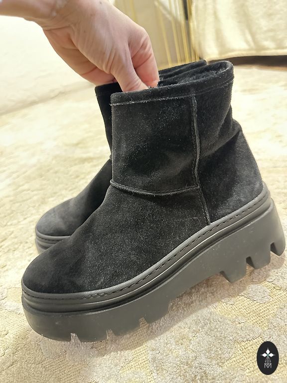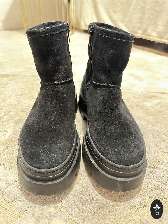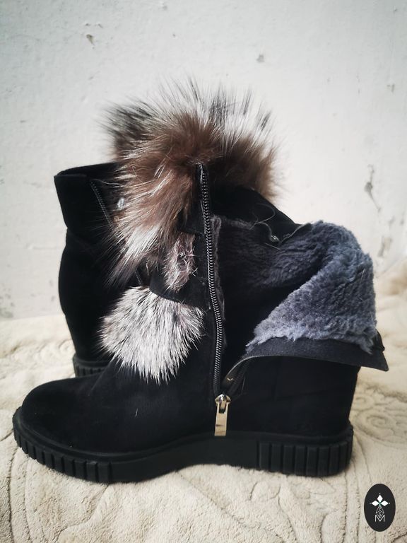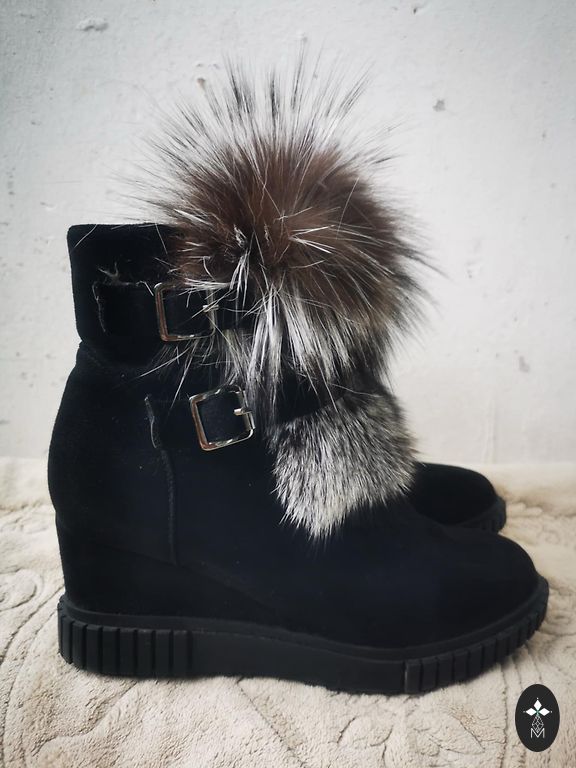 Italijos batai idealios būklės. Viduje viskas natūraliame kailyje. Kokybiška zomša ir labai patogi kolodka. Kulno aukštis 5 cm, blauzdos plotis 17 cm, aukštis 35 cm.