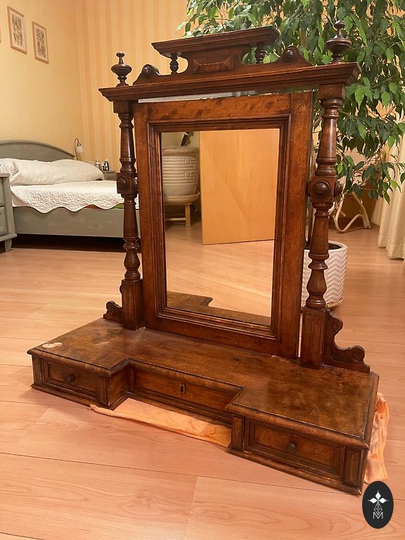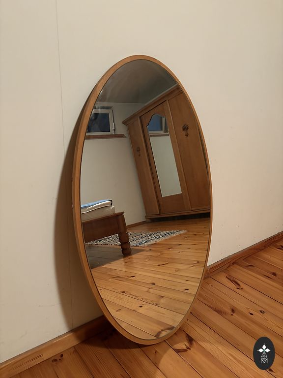 Spogulis masīvkoka rāmī.