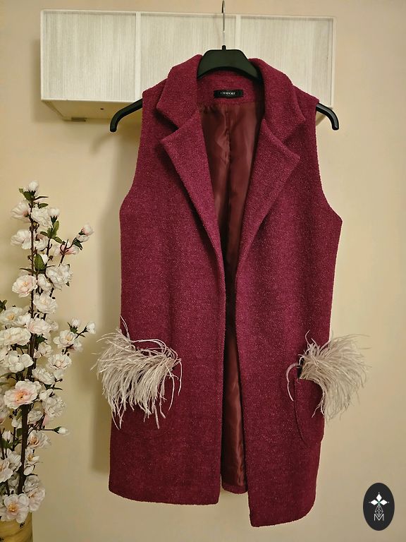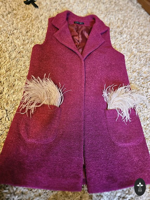 Soft and fluffy, beautifully purple in color, with a 3-hook closure, has pockets. Bought in Spain some time ago, tags are cut off. Length 78cm. Approximately 100cm in the chest, waist, and hips when buttoned, but looks better worn open. Condition like new. Perfect for chilly weather to feel like in a soft cloud.