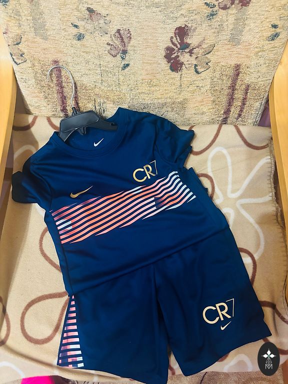 Комплект для футболиста интенсивно носился. Теплая куртка большего размера. Шорты и две футболки на 128 см.