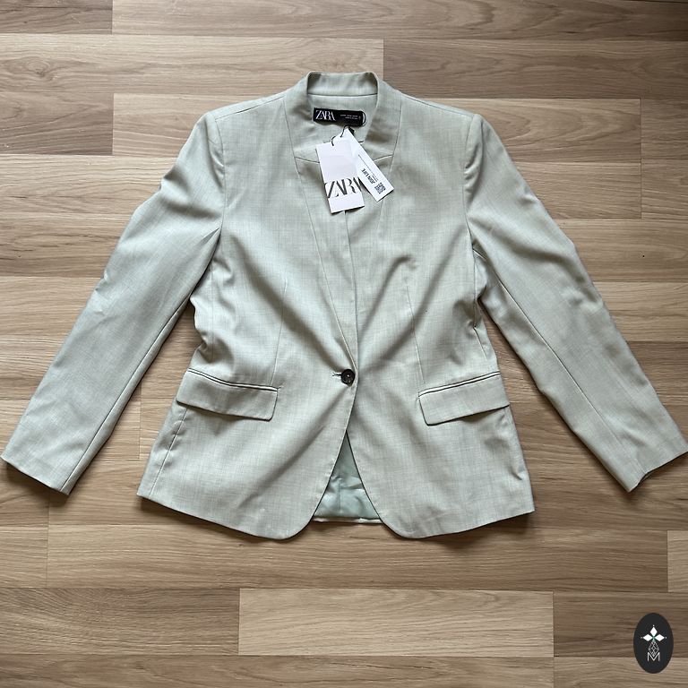 Color: green sweater + white pants